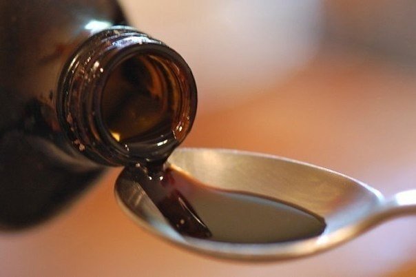 1 столовую ложку сиропа солодки развести в стакане не очень горячей